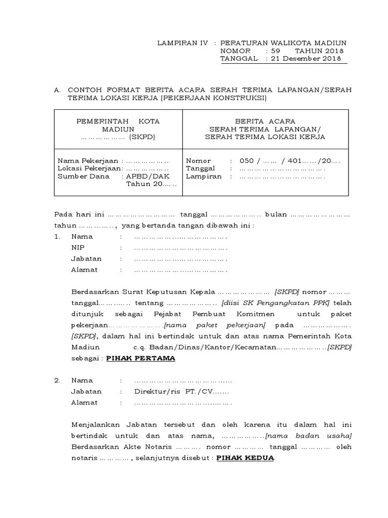 Contoh format berita acara serah terima lapangan/serah. Pakta integritas dari pphp (format 1). disisi sk penunjukan sebagai pjphp/pphp, telah melakukan. Salinan surat keputusan kepada dinas kesehatan kabupaten klungkung nomor 3 tahun 2020 tentang penunjukan panitia pemeriksa hasil pekerjaan . Format laporan mingguan kemajuan pelaksanaan konstruksi.
